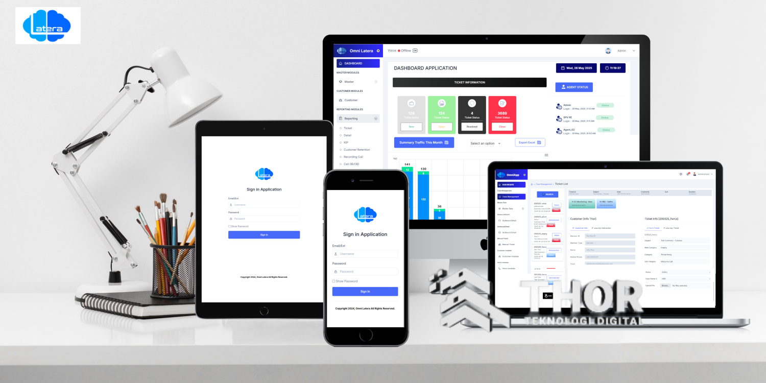 Latera Omnichannel Application adalah platform keterlibatan pelanggan terintegrasi yang dirancang untuk menyatukan seluruh kanal komunikasi bisnis—telepon, email, live chat, media sosial, hingga aplikasi pesan instan—ke dalam satu sistem terpadu dan terkelola.